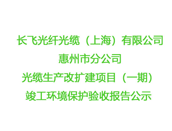 長(zhǎng)飛光纖光纜(上海)有限公司惠州市分公司 光纜生產(chǎn)改擴(kuò)建項(xiàng)目(一期)竣工環(huán)境保護(hù)驗(yàn)收?qǐng)?bào)告公示